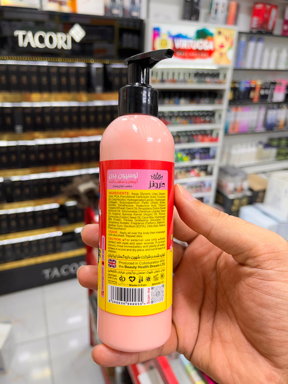 لوسیون بدن آبرسان آدامس بادکنکی مارونز چیست؟ این لوسیون بدن فانتزی با رایحه نوستالژیک و ماندگار آدامس بادکنکی (خرسی) و دارا بودن ویتامینها و ترکیبات آبرسان، نرمی و لطافت را به پوستتان هدیه میکند. روغن نارگیل، روغن بادام شیرین و روغن آرگان و جوجوبا موجود در محصول به آبرسانی و لطافت هرچه بیشتر پوست شما کمک میکنند. علاوه بر این وجود هیالورونیک اسید در این محصول سبب آبرسانی عمیق پوست میشود. یکی دیگر از ترکیبات مهم این محصول دایمتیکون است. این ترکیب نرمکننده با تشکیل یک لایه محافظ روی سطح پوست که رطوبت را به دام میاندازد به آبرسانی و حفظ رطوبت پوست کمک میکند. وجود آلانتوئین به عنوان یک ترکیب ضدالتهاب در این محصول سبب شده است که برای پوستهای حساس و خیلی خشک نیز گزینه مناسبی باشد و سبب آبرسانی این نوع پوستها گردد. این لوسیون بدن مناسب چه کسانی است؟ لوسیون بدن آبرسان آدامس بادکنکی مارونز برای انواع پوست مناسب است. روش مصرف لوسیون بدن آبرسان آدامس بادکنکی مارونز به چه صورت است؟ لوسیون را روی تمام بدن بمالید و ماساژ دهید تا زمانی که جذب شود.این کار را هر روز انجام دهید